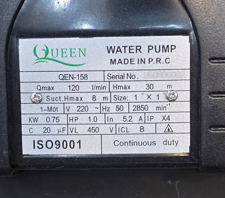 حداکثر آبدهی: ۱۲۰ لیتر در دقیقه