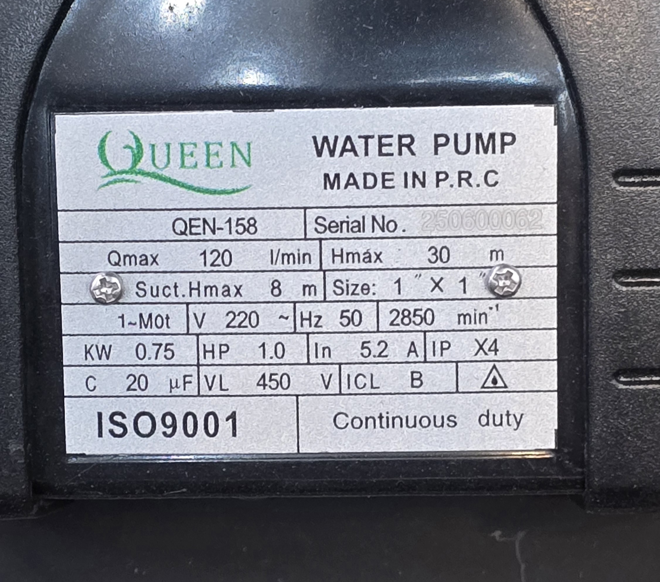 حداکثر آبدهی: ۱۲۰ لیتر در دقیقه
